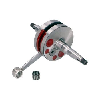 Siin on standard uuesti määratletud! Manufaktuuri protsessis valmistatud väntvõll, tasakaalustatud ja täpselt valmistatud 44mm käiguga ja 85mm kepsuga, mis on mõeldud seeria- kuni keskmise taseme tuuningmootoritele. Tugevdatud pressliide väntvõlli tappi ja käigu ketta vahel muudab Schmitti väntvõlli oluliselt jäigemaks ja kiirusekindlamaks. Schmitti väntvõll tugevdatud kepsu ja hõbetatud kepsulaagriga on märgatavalt sujuvam ja pöördemomendilembesem. Kepsu juhtimine toimub alumise kepsulaagri kaudu hõbetatud tõukelaagritega, seega on kolvisõrme peenhäälestatud seibide paigaldamine välistatud.